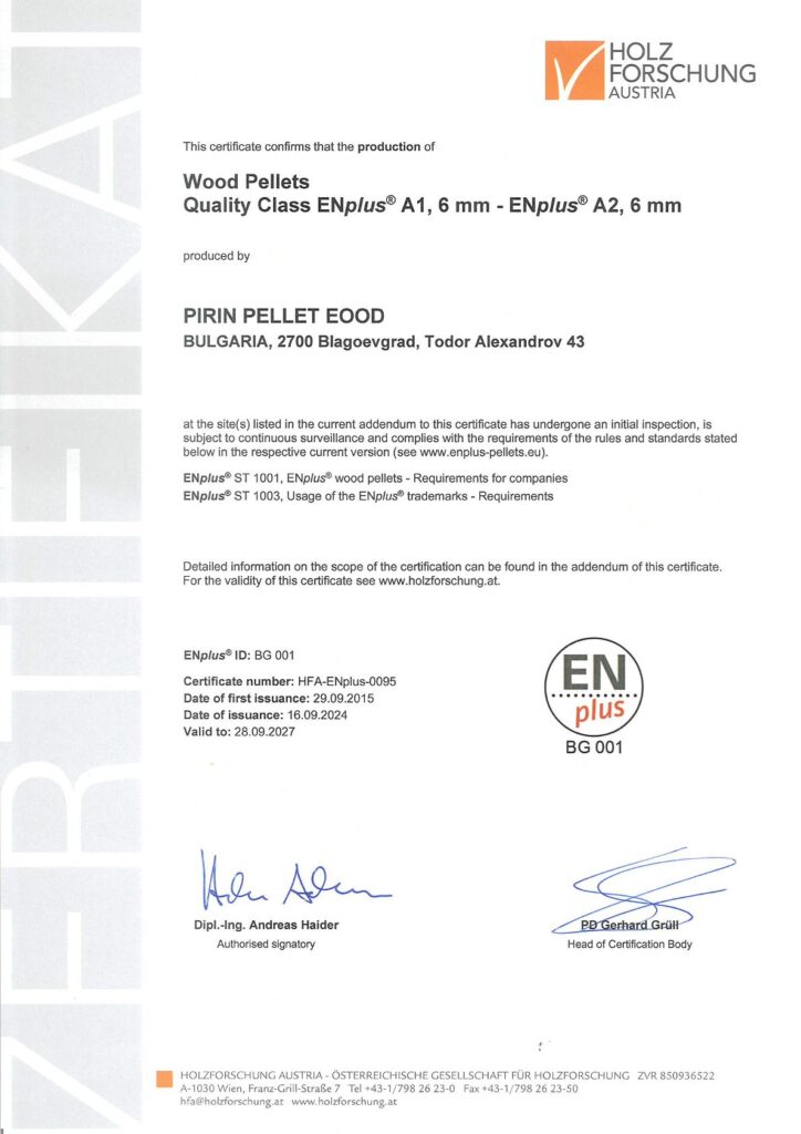 ENplus® certification is an international quality standard for wood pellets. It ensures that the pellet meets high standards in terms of energy performance, low ash content and sustainability.